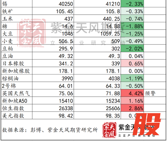股指方面,美股小幅回调,A50和恒生指数积极上行。