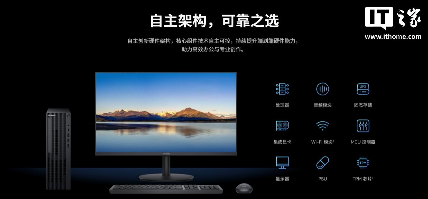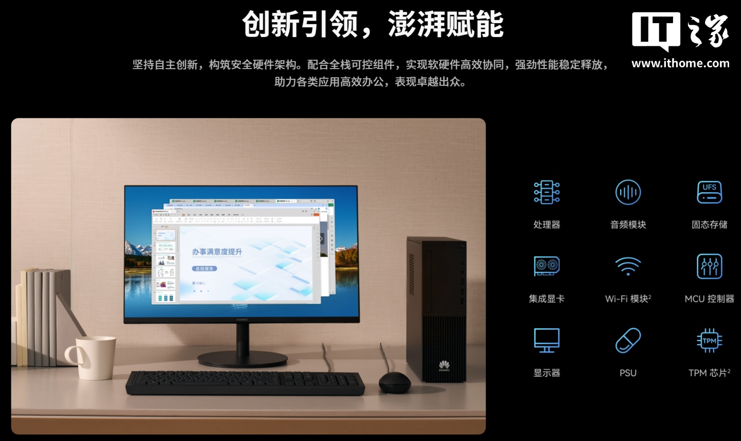 据介绍,华为擎云 W515y 台式机自主创新硬件架构,核心组件技术自主可控,国内生态厂商联合研发,打造广泛兼容的生态环境。从操作系统、应用到办公外设各类软硬件生态,多方兼容适配,满足行业主流办公需求。