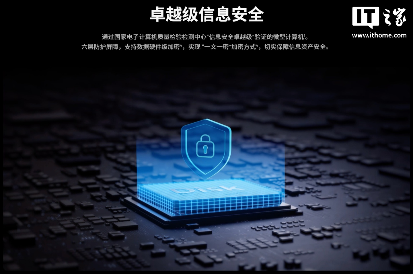 华为擎云 W515y 台式机是通过国家电子计算机质量检验检测中心“信息安全卓越级”验证的微型计算机,拥有六层防护屏障恒信策略,支持数据硬件级加密,实现“一文一密”加密方式,可保障信息资产安全。主机采用空间静冷散热方案,满载运行时,机箱壁面温度维持在 30°C 以下,噪声约 19.29 dB。