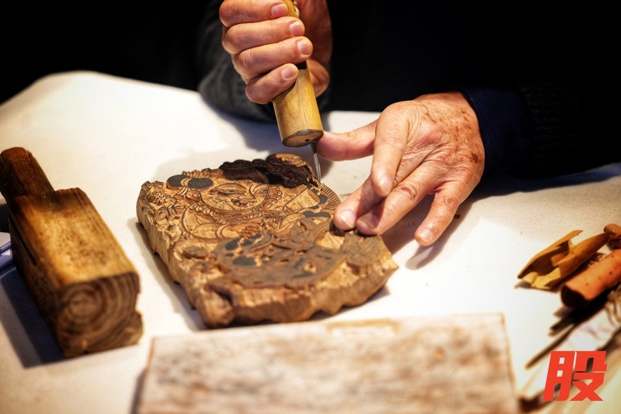 木版年画代表性传承人在现场演示